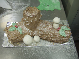 Yule log. I didn't know people made these anymore. I think it's a throwback to French hotel dining back in the day. That's the only setting I can see someone pulling this off. Ye Olde Yule Log is essentially a roulade cake. For this one we used a simple sponge, soaked in booze, with a cranberry meringue buttercream and chestnuts. It's wrapped and chilled, then cut and assembled to look like a log in a forest. We decorated it with chocolate buttercream, meringue mushrooms, and marzipan Holly. I thought it looked mad corny, but later in my life when I am a housewife in the suburbs, I can pull this one out at my annual Christmas party and really wow the husbands. <--- That was a joke. Yule-icious!